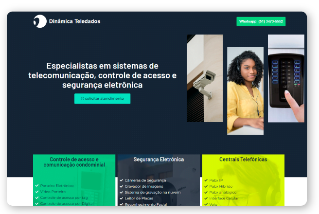 A Dinâmica Teledados é uma empresa líder em telecomunicações, segurança eletrônica e controle de acesso, atuando há mais de 20 anos na região metropolitana de Porto Alegre sendo assim precisavam de um site que comunicasse sua marca de forma adequada. Desenvolvemos então um site moderno, de fácil navegação e rápido, com um layout atrativo e call-to-actions estrategicamente posicionados. Atualizamos a paleta de cores para refletir a evolução da marca. O resultado é uma plataforma que transmite confiança, profissionalismo e incentiva conversões.